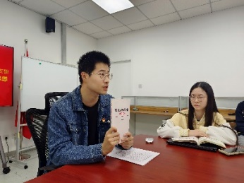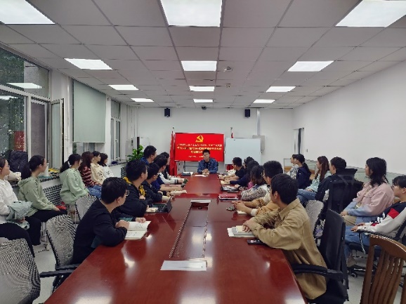 2023年10月15日10:00,协议换爱 本科生第二党支部在电子楼306开展10月主题党日活动,以“学习习近平新时代中国特色社会主义思想”为专题举办读书分享会。党支部书记臧祝利主持学习,全体党员依次作分享,党支部12名入党积极分子参加学习。