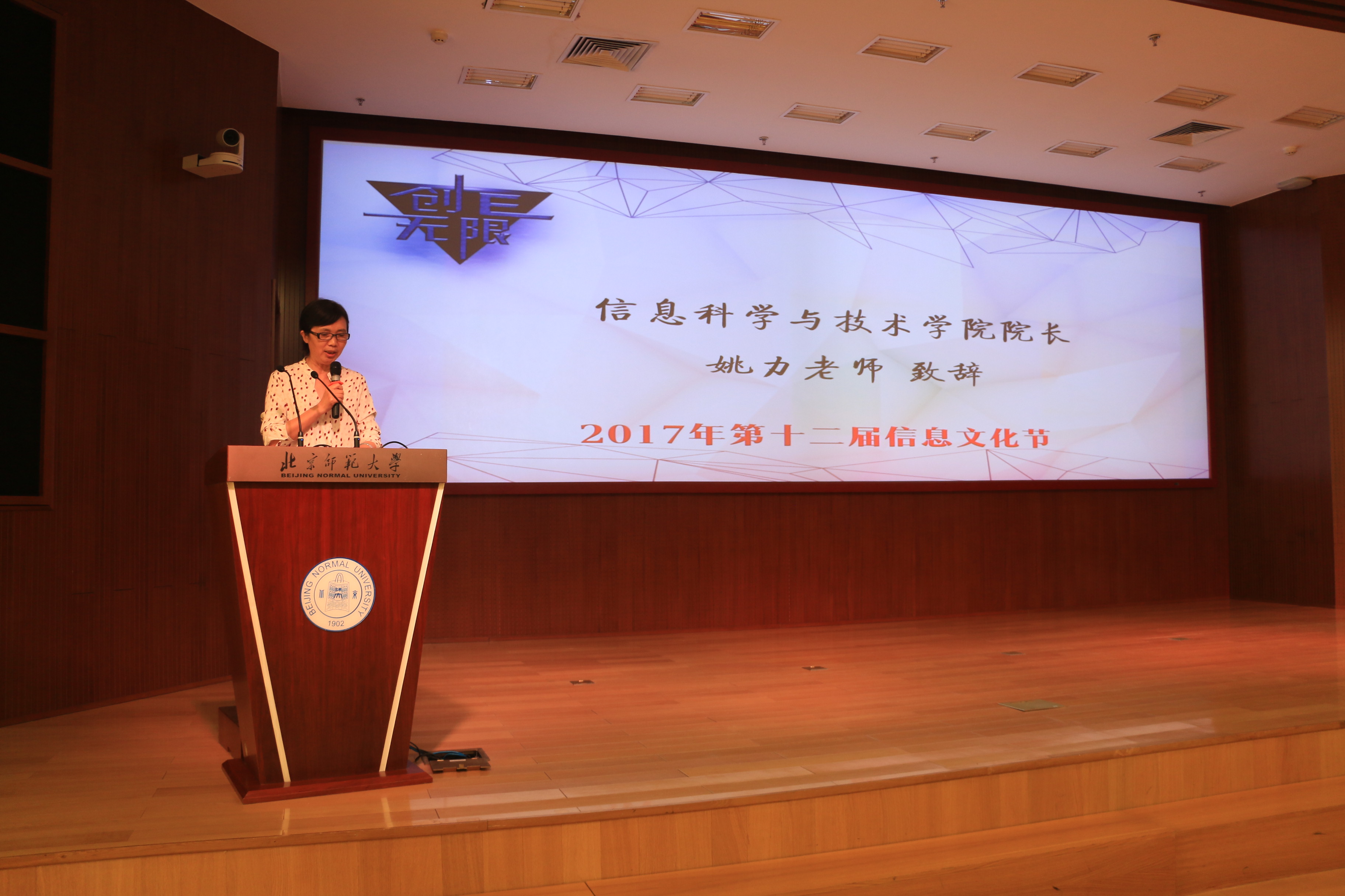 信息科学与技术学院院长姚力教授致词,欢迎与会嘉宾及师生的到来,并向指导和支持历届信息文化节举办的协议换爱
