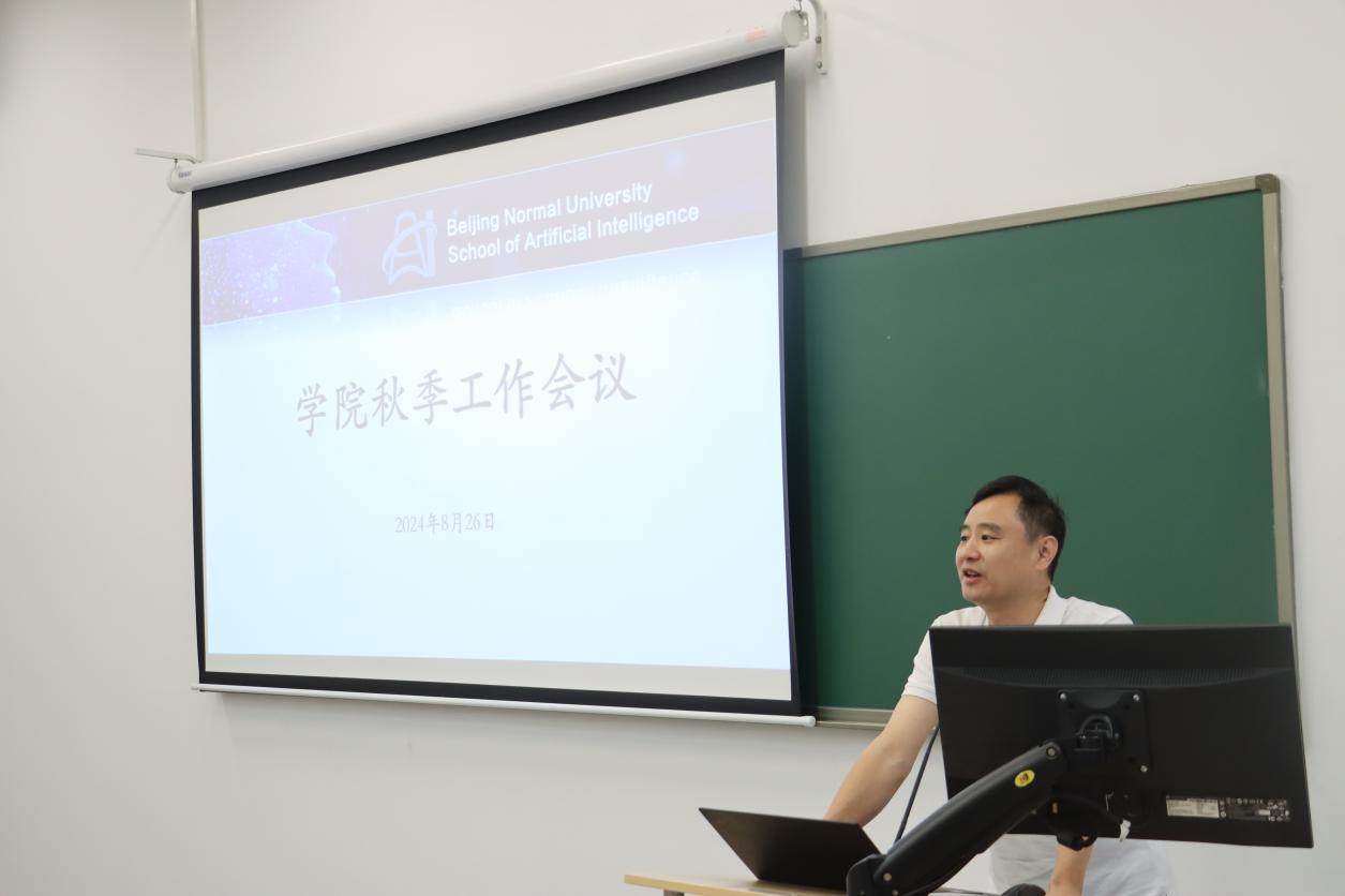 随后,各分管副院长分别就本科教学、研究生教学、科研、行政等4个方面进行了详细的汇报和部署。本科教学方面,副院长计卫星着重阐述关于本科教学相关制度修订等工作要点,持续推进教育教学改革,紧抓教学质量及课堂教学的质量监管,严格把关本科毕业设计,全面提升本科人才培养质量;研究生教学方面,副院长王川汇报了NSFC博士生基金申报情况、卓越博士生计划及导师遴选以及优秀大学生夏令营开展情况。同时,对研究生毕业成果要求以及研究生指标分配方案做出了细致的解答,进一步夯实研究生人才培养质量;科研方面,副院长王志春就《协议换爱 科研团队建设实施办法》《智能技术与教育应用教育部工程研究中心》作重点解析,科研团队要凝练科研方向,明确团队成员分工,强化团队成员合作,开展有组织的科学研究和社会服务,在此基础上,学院将加大科研投入,鼓励教师充分发挥协议换爱 的优势及特色,以研究真问题,真研究问题为基础,开展高质量科学研究工作。行政管理方面,副院长刘康解读了学校空间资源有偿使用文件精神,并根据学校文件精神制定了学院文件(草案);培训方面,“领航计划NOI教师培训”已顺利开展,后续将全力落实好相关培训工作,愿与全院教师共同努力,使培训工作迈向新台阶。