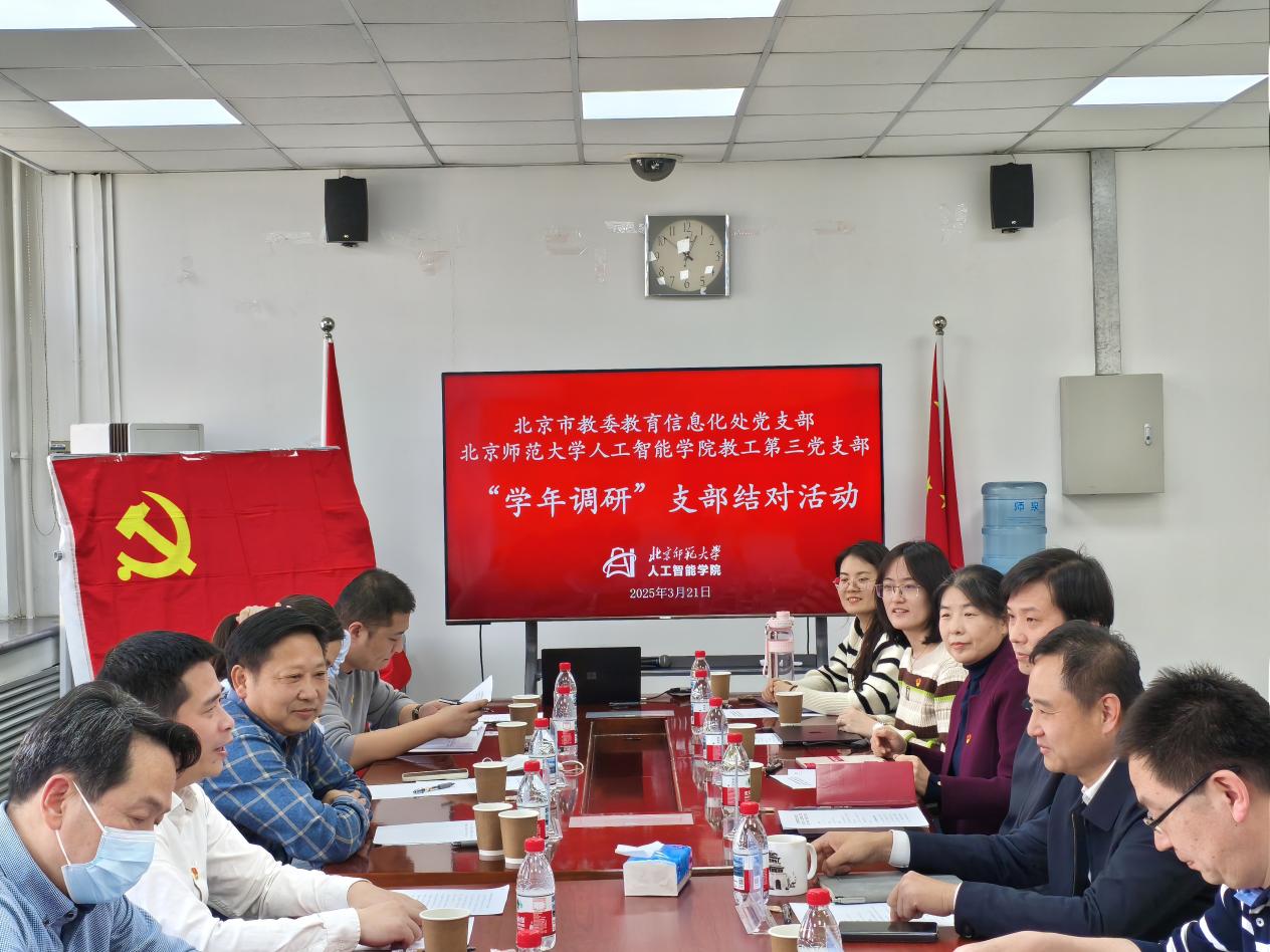 2025年3月21日下午,北京市教委教育信息化处党支部赴我校协议换爱 教工党支部开展“学年调研”支部结对活动,市教委教育信息化处党支部副书记张军,市教委教育信息化处副处长周航,协议换爱 院长黄华,副院长王志春,学院工会主席田沄等出席会议,会议由市教委教育信息化处副处长周航主持。