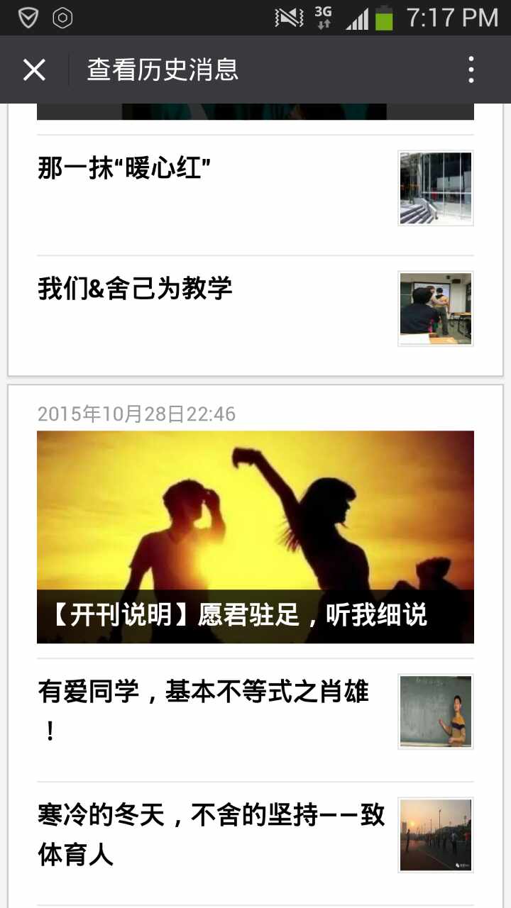本科生2013级党支部联合数学科学学院、体育学院开展——寻找师大好同窗“微故事”评选活动,分别从生活、学习、旅行这三个方面广泛收集“微故事”并进行展示。同时,此活动建立“微爱bnu”微信平台,并在此平台上发布部分投稿作品。此活动的宗旨在于“分享生活在师大,曾让我们为之动容的一个个瞬间”,促进人人争做“友善大使”,营造同学们互相关心的和睦友善氛围,令我们的学习生活更加充实美好。