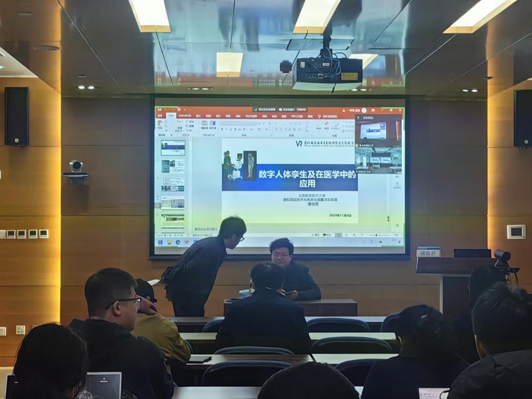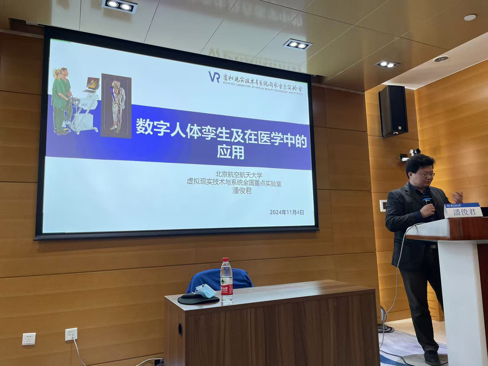 2024年11月4日,协议换爱 京师智能讲堂第二十期在海淀校园京师讲堂第三报告厅成功举办。本次讲座特邀国家万人计划青年拔尖人才,中国虚拟现实产业联盟虚拟医疗专委会秘书长,北京航空航天大学虚拟现实技术与系统全国重点实验室潘俊君老师以“数字人体孪生及在医学中的应用”为主题作报告。全校师生积极参与本次活动。