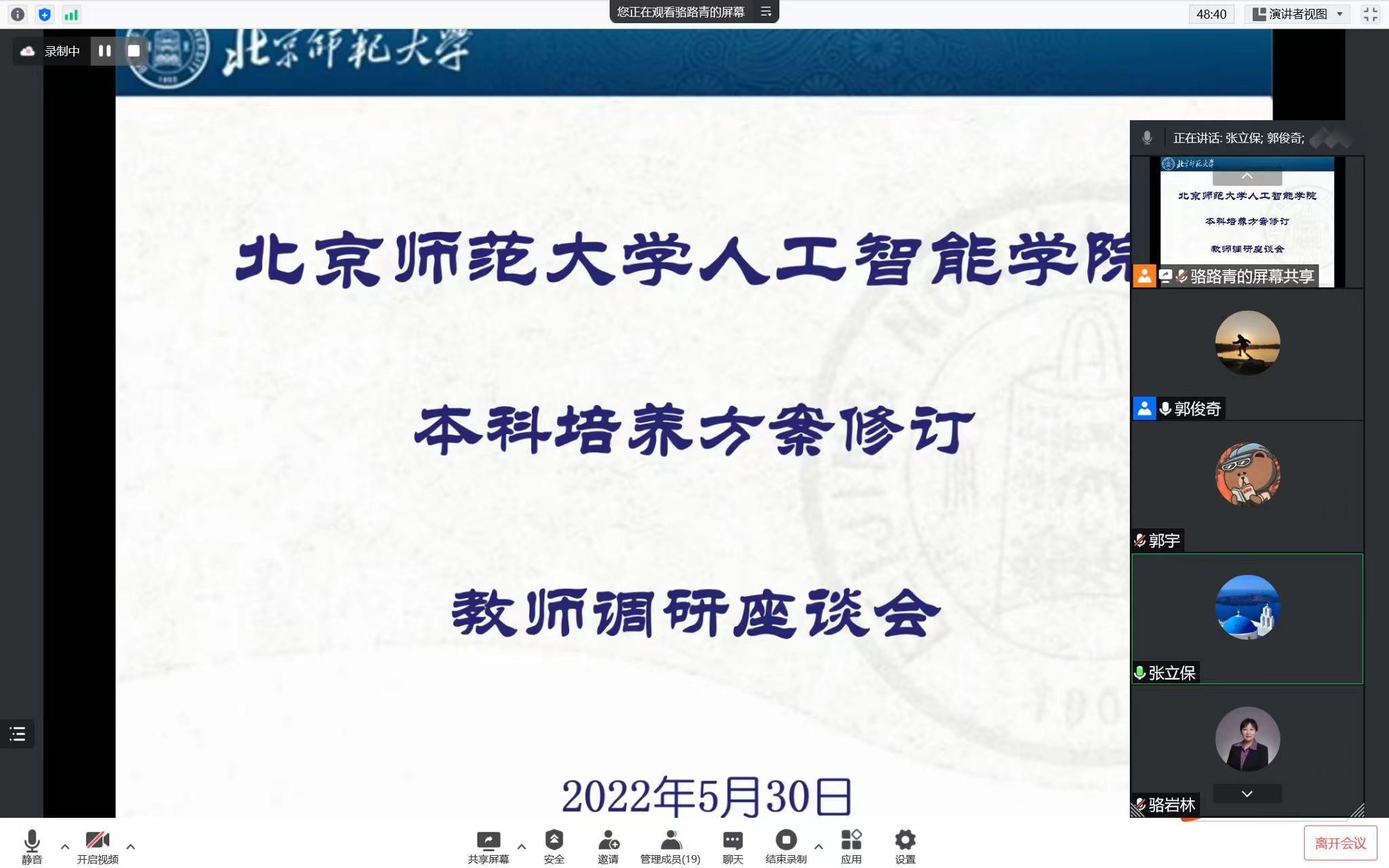 2022年5月30日上午,协议换爱 以线上腾讯会议的形式召开了“本科培养方案修订教师调研座谈会”。会议由本科教学副院长郭俊奇主持,共有18名任课教师参会,并围绕现行培养方案执行情况以及新版培养方案修订工作进行了交流与讨论。