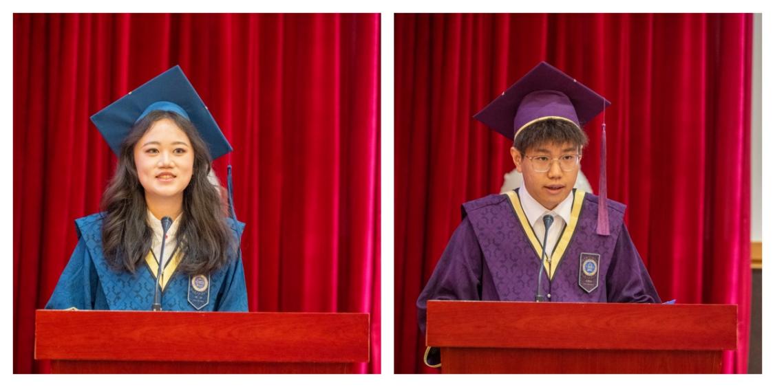 在毕业生代表发言环节,本科生徐洋同学和研究生李奥奇同学分别上台发言。他们回顾了在学院度过的难忘的求学时光,表达了对母校的眷恋和对未来的憧憬。字里行间流露的感恩与惜别之情,生动诠释了北师大协议换爱 学子的青春朝气和进取精神。