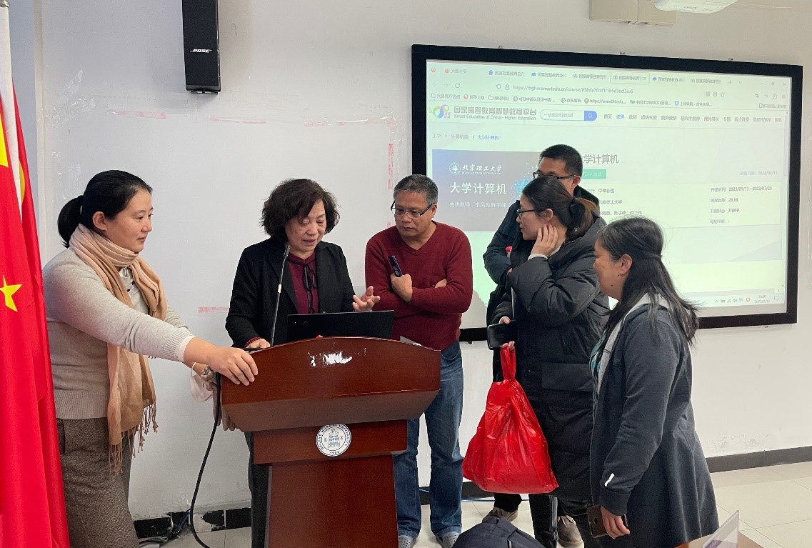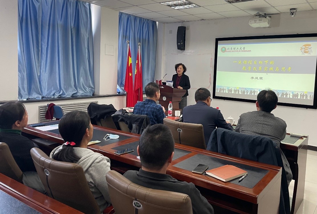 2023年2月13日下午,新学期伊始,学院举办了一流课程建设专题讲座,特邀北京理工大学李凤霞教授做了题为《一流课程目标下的教学改革实践与思考》的报告,学院执行院长黄华老师和党委书记杨学玉老师分别主持和列席会议,学院30余名教师现场听取报告并参与研讨交流。