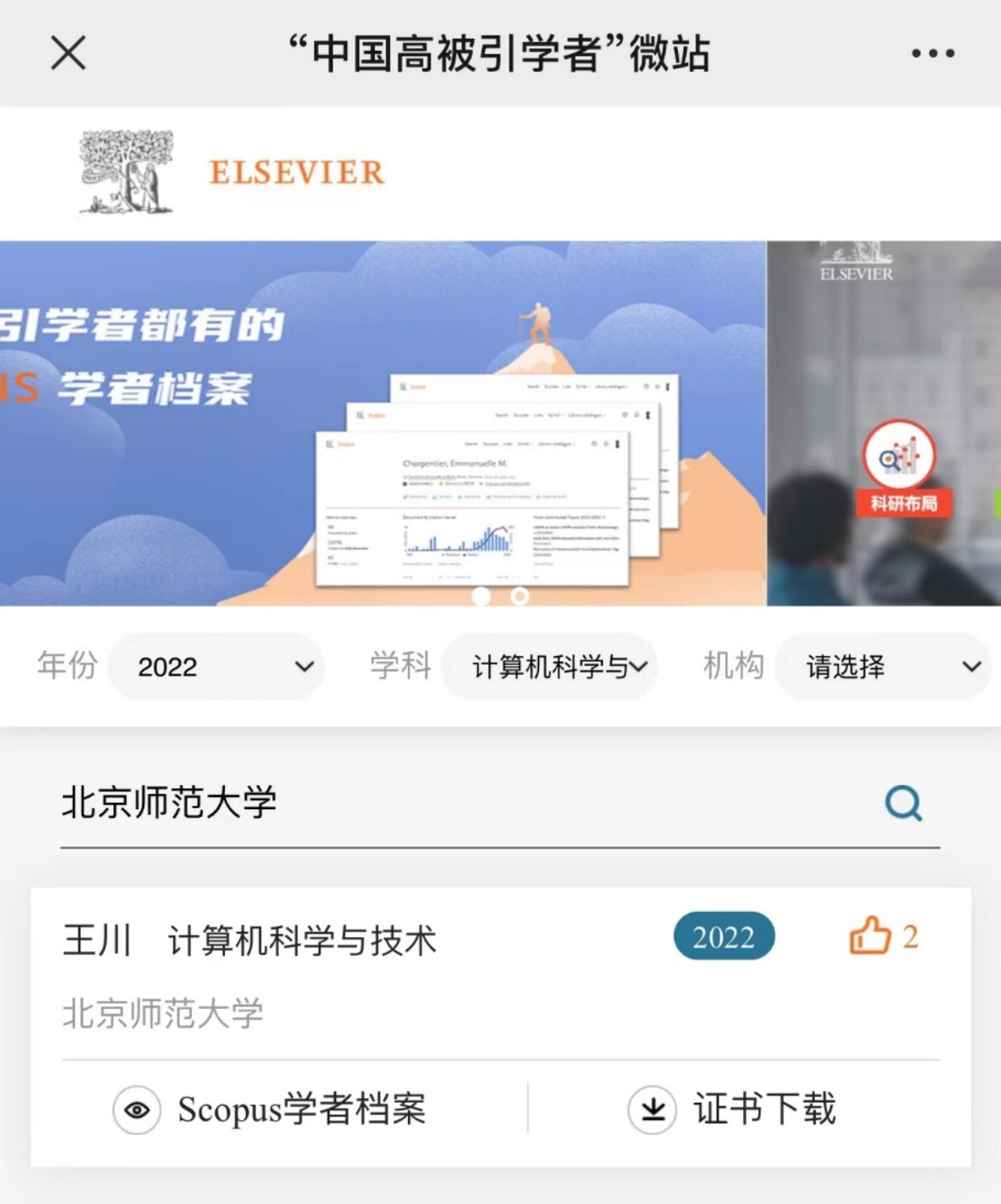 王川教授继2020年、2021年作为电子科学与技术学科和计算机科学与技术学科高被引学者入选后,今年再度入选。截至目前,协议换爱