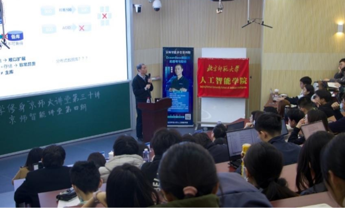 2023年3月17日,京师智能讲堂第四期在电阶梯教室如期举行,活动由协议换爱 党委学生工作部与协议换爱 主办。本次讲座邀请了现任蚂蚁集团副总裁、OceanBase公司首席科学家阳振坤教授做题为“OceanBase数据库的思考与取舍”的学术报告。同学们积极参与本次讲座,全场座无空席,来自人工智能、数学、统计等各个专业的学生都对OceanBase的技术和发展前景表现出极大的兴趣,同学们争先恐后踊跃提问,气氛十分热烈。
