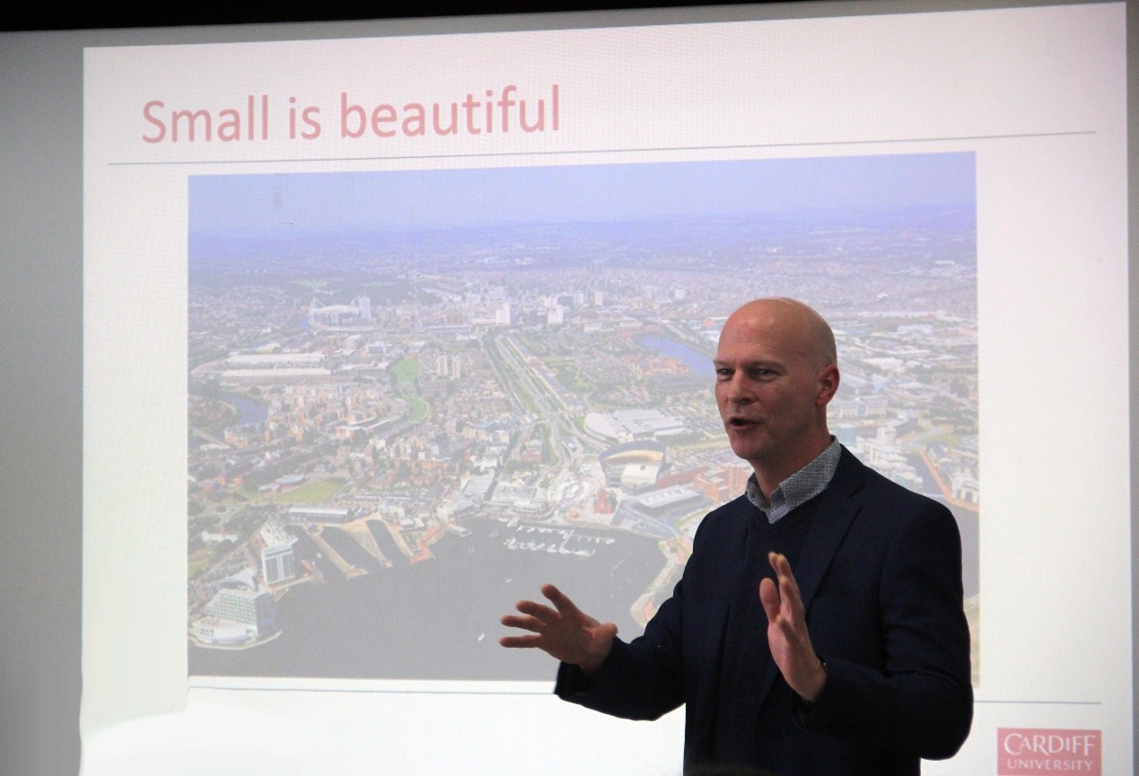 Johannes Benedikt教授首先介绍了卡迪夫大学的地理环境优势。卡迪夫大学坐落于英国威尔士首府卡迪夫市中心。威尔士是一个精致而又美丽的城市,而卡迪夫市作为威尔士的首府,在英国的地位等同伦敦与苏格兰首府爱丁堡,它拥有着首都市的设施,美丽的城堡,还有位于市中心的校园--卡迪夫大学。