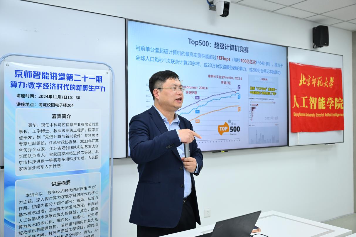 为进一步落实国家创新驱动发展战略,深化产学研融合,加强高端人工智能人才培养,2024年11月7日,协议换爱 与曙光信息产业股份有限公司隆重举行研究生实践基地揭牌仪式,并成功举办京师智能讲堂第二十一期、“高水平科技自立自强”系列活动第七期——《算力:数字经济时代的新质生产力》。协议换爱 院长黄华,中科可控信息产业有限公司董事长聂华,协议换爱 副院长王志春出席,我校各院系学生79人参加。活动由协议换爱 王志春老师主持。