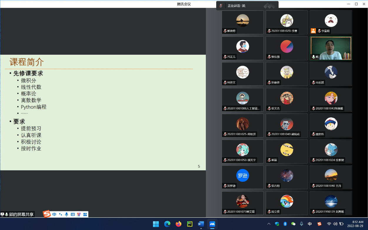2022年8月29日,是本科生新学期开学的第一天,协议换爱 开展了例行的教学巡视活动。与往年不同,本学期因疫情防控政策要求,开学前两周的教学均为线上授课形式,所以本次巡视通过腾讯会议采用线上巡视。巡视小组成员包括:教学副院长郭俊奇、人工智能系主任田沄、计算机系主任付艳、2020级人工智能班班主任李嘉、2020级计算班班主任樊亚春、2021级人工智能班班主任骆祖莹和本科教务秘书骆路青。