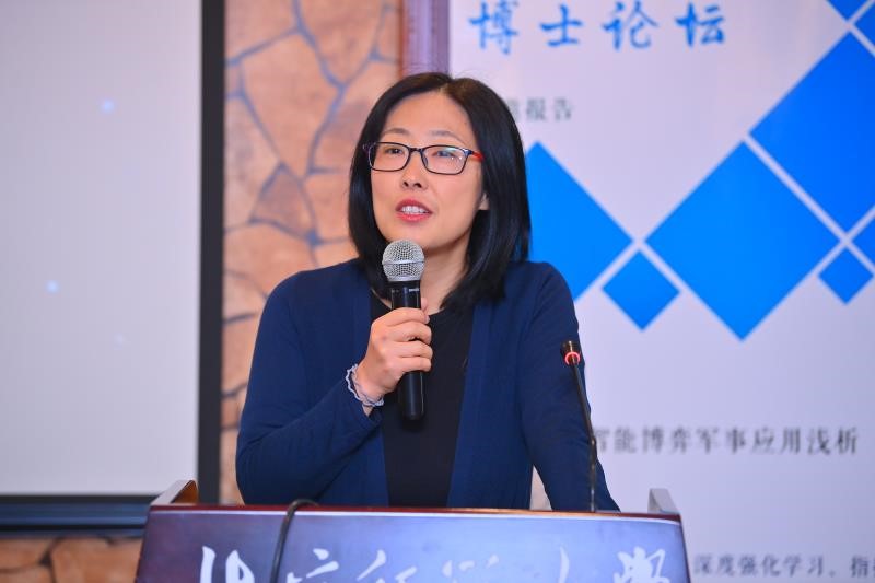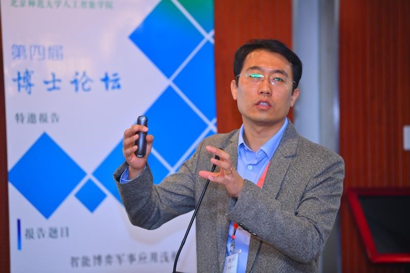 胡晓雁主持博士论坛的特邀报告环节。北京航空航天大学刘祥龙老师,中国电科第二十八所郭成昊老师,北京航空航天大学张日崇老师,及协议换爱 武仲科老师进行了特邀报告。刘祥龙老师报告了人工智能“反脆弱”技术研究前沿进展,在国家安全、民生便利等方面应用的必要性,并展示了该技术最新实现手段。郭成昊老师汇报了智能博弈在军事领域的前沿应用,阐述智能博弈算法的最新技术,介绍了智能博弈挑战赛。张日崇老师报告了少量标注数据场景下,自然语言处理的前沿方法,从而达到提升语义理解准确性和应用范围的目的。武仲科老师报告了形状智能分析的最新概念、表示和生成形状的方法、形状分析的基本理论及黎曼几何框架下的形状分析方法。