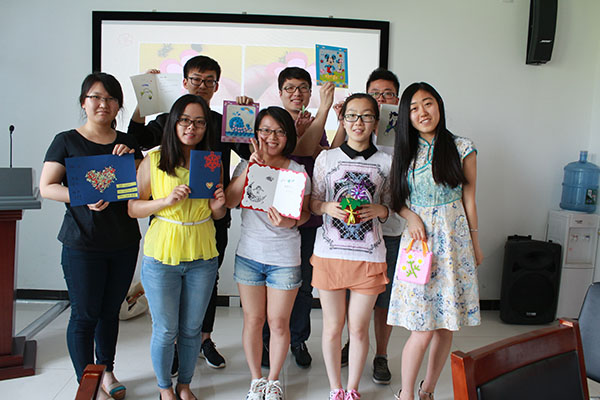 此次活动首先通过校园网、QQ群、微博、微信等多种形式的网络社交平台向同学们进行全方位、多角度地宣传活动主题与精神,鼓励和号召同学们积极参与其中,为医院里的小朋友送去一份温暖和快乐。此次活动与中国传媒大学理工学院2014级第一党支部共同策划举办,同学们从认识到熟悉,积极交流合作,参与热情高涨。活动中,首先通过开展“你比我猜”的游戏环节,使大家相互熟悉,活动氛围也和谐欢乐。接着,分四个小组进行了手工品制作活动,各小组成员在组长的带领下,分工明确,发挥所长,制作出了一个个精美的小手包、粘布花盆、手提袋等各具创意的可爱的手工艺品,并且还制作了充满爱心的祝福卡片,承载着大家对小朋友们真诚的问候与祝福。最后,同学们以小组展示的形式对自己制作的手工艺品向大家说明展示,并说出自己对小朋友们的寄语和希望。每个小组在展示的同时还响亮地喊出自己的口号,“Forever Young”、“好好学习,天天向上”等,希望小朋友们每天都开开心心,健康成长。最后,选出合适的人员将同学们所做的作品赠送给北京华信医院心脏病房的孩子们,送去自己的祝福和鼓励,将爱心传递下去。