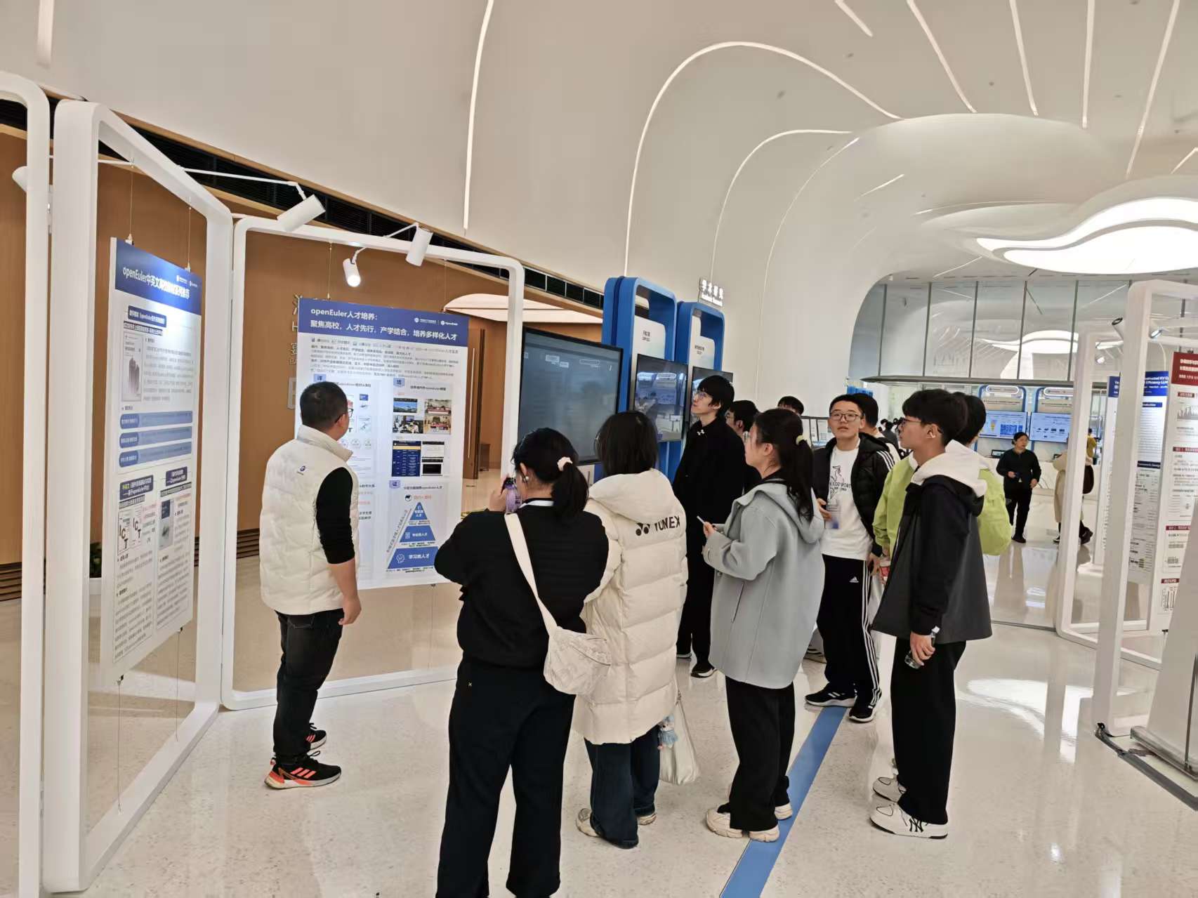 下午,同学们根据兴趣自主选择了多个技术分论坛进行深入交流,内容涵盖AI、内核、云原生、安全、嵌入式、RISC-V等前沿方向。在“AI使能与应用”“开发者使能与工具”等特别兴趣小组(SIG)活动中,大家不仅聆听到行业专家的实战分享,还在现场工作人员的引导下,进一步理解openEuler操作系统的架构特色与应用逻辑,切身感受从理论认知到实践落地的完整路径。
