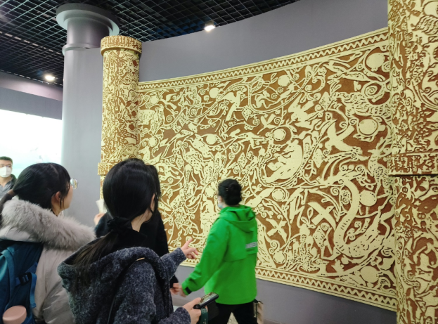 图三:参观动物浮雕壁,同学们纷纷表示震撼